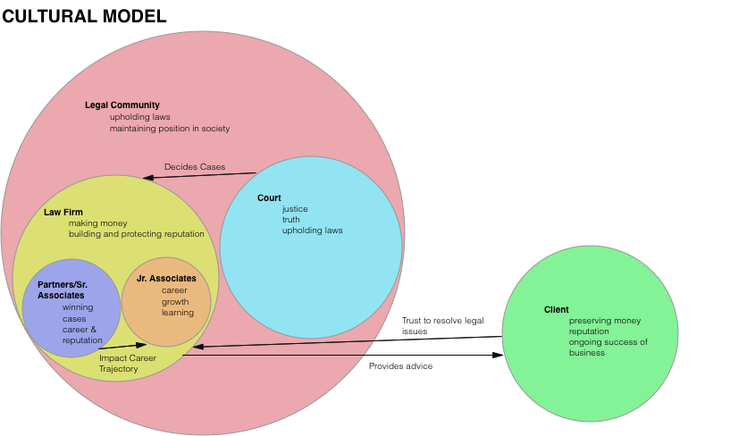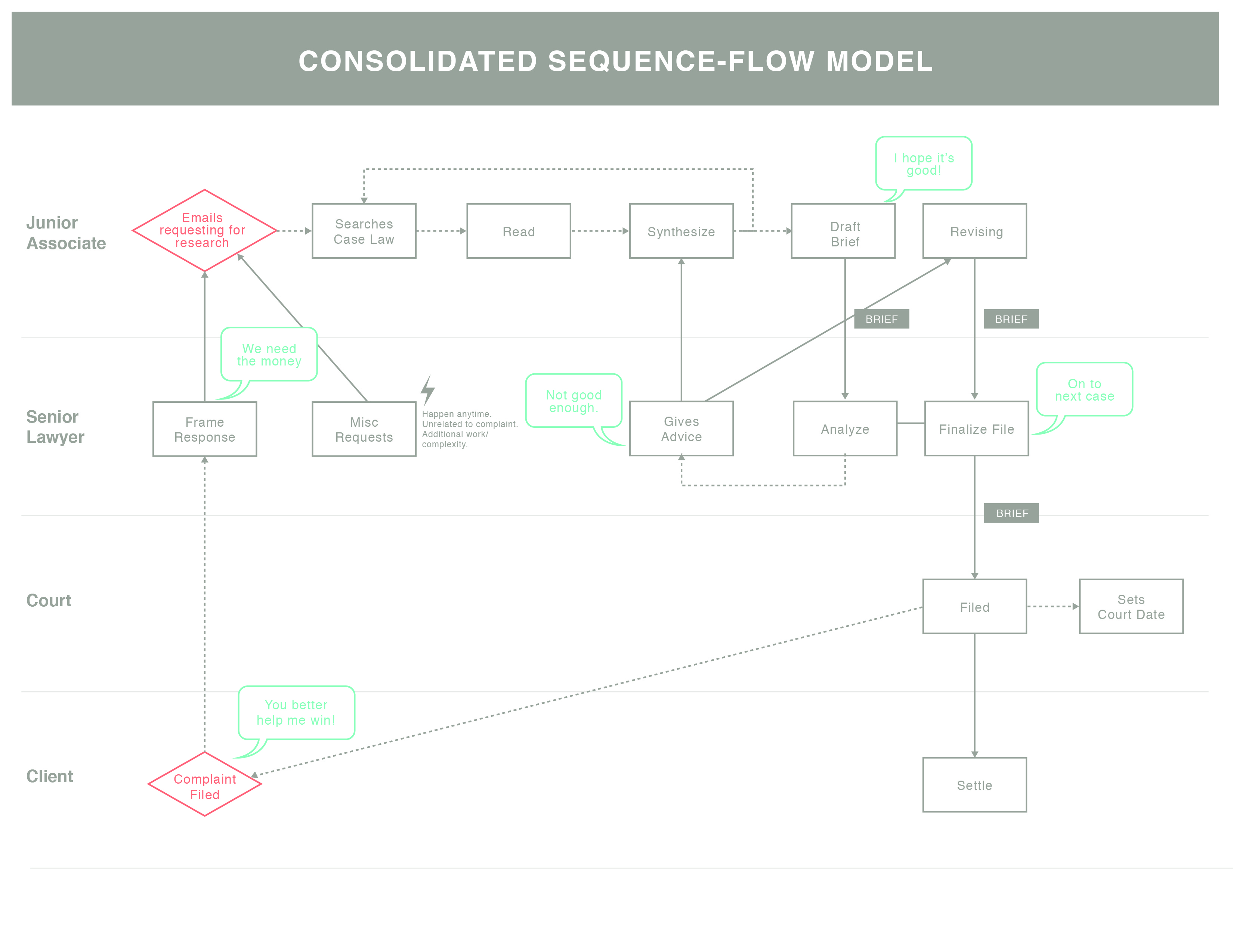 We had interpretation sessions for each interview, and consolidated individual flow models into a single sequence-flow model that represented the research process across all our interviews. We also built a cultural model to help us understand the context in which we would be designing.
