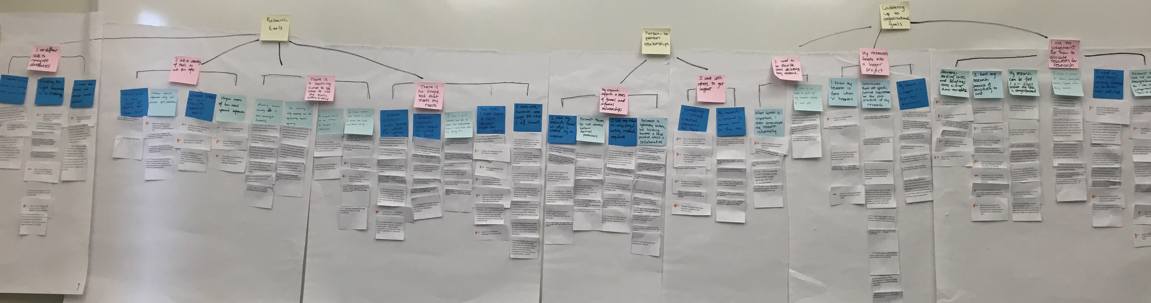 We used interpretation notes from our interviews to build an affinity diagram from the bottom up.