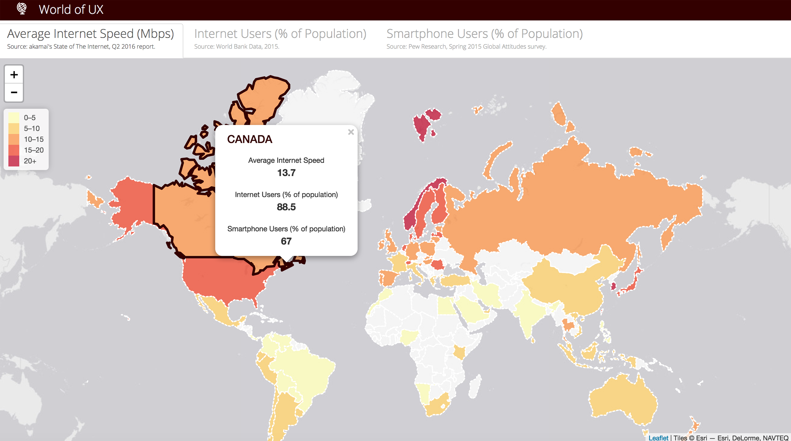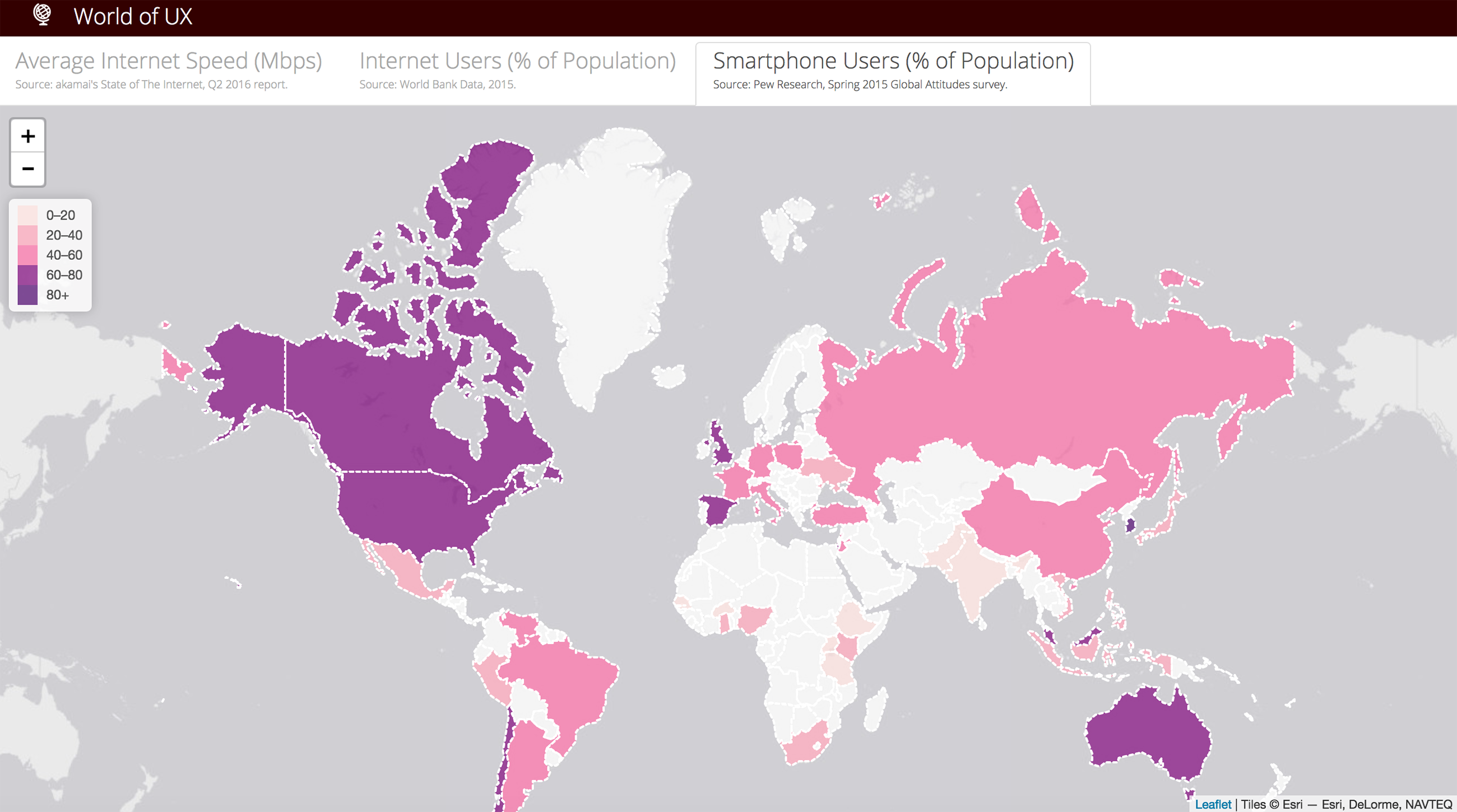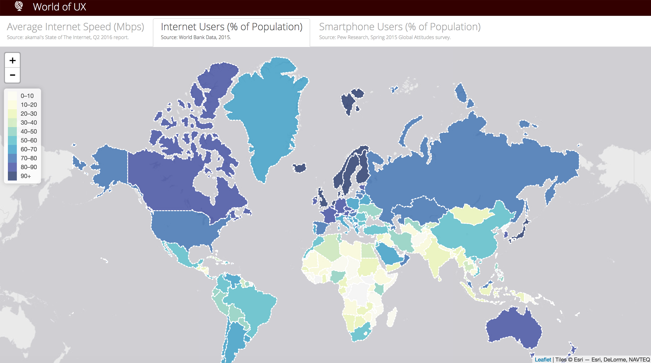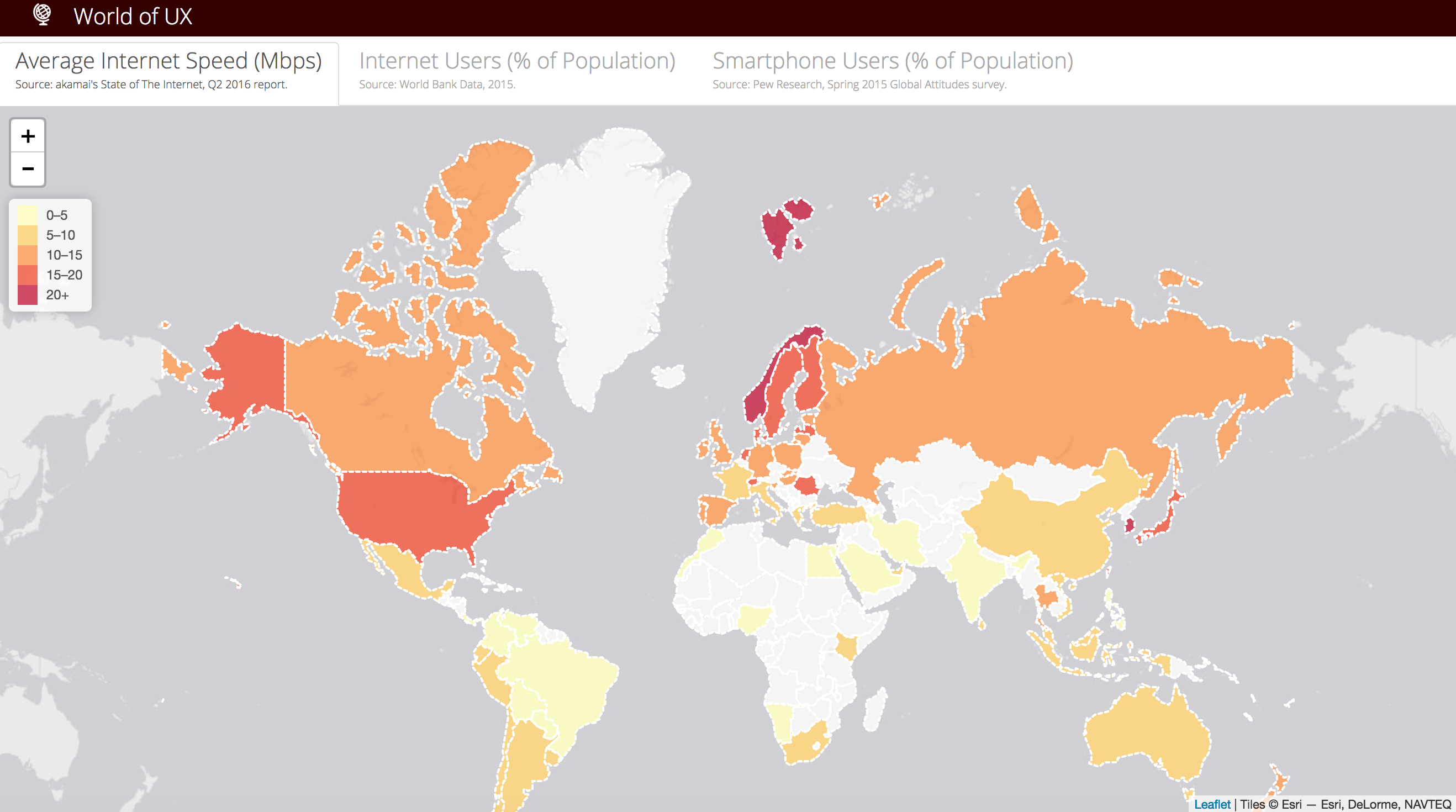 In a conversation with a software product team focused on designing for an international audience, I learned that they had recently a installed 2G network at their office after a trip to India, in order to create a testing environment that mimicked the speed of connectivity in India. Before that trip, they had not realized the impact network speed could have on their design strategy. I started wondering about how often a gap in understanding about global Internet contexts might be impacting the international scalability of other product designs.